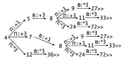 3. S = 4 (также верный ответ S = 6). Если Петя добавит в кучу 1 или 3 камня (4 + 1 = 5 или 4 + 3 = 7), Ваня должен получить в куче 8 камней (5 + 3 = 8, 7 + 1 = 8) ив ответ на любой ход Пети (8 + 1 = 9, 8 + 3 = 11 или 8 x 3 = 24), Ваня должен утроить число камней в куче и выиграть (9 x 3 = 27, 11 х 3 = 33 или 24 х 3 = 72). Если Петя утроит число камней в куче (4 x 3 = 12), Ваня также должен утроить число камней в куче и выиграть (12 x 3 = 36).