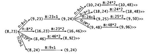 А из позиций (8,23) и (7,24) Петя может получить позицию (8,24) добавив камень во вторую (8,23+1) или первую (7+1,24) кучу соответственно.