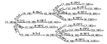 В дереве рассмотрены все возможные ходы Пети и ответные ходы Вани, соответствующие выигрышной стратегии. Знаком ">>" обозначены позиции, в которых партия заканчивается.