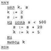 Определите значение переменной k после выполнения следующего фрагмента программы, записанной ниже на разных языках программирования.