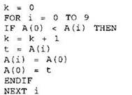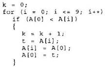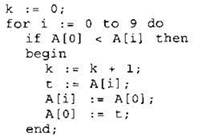 19. В программе используется целочисленный массив А с индексами от 0 до 9. Значения элементов массива равны 4; 5; 4; 7; 6; 3; 9; 11; 7; 8 соответственно, т.е. А[0] = 4; А[1] = 5 и т.д.