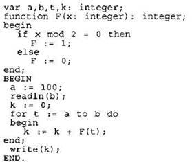 В качестве ответа вам необходимо привести фрагмент программы (или описание алгоритма на естественном языке), который должен находиться на месте многоточия. Вы можете записать решение также на другом языке программирования (укажите название и используемую версию языка программирования, например Borland Pascal 7.0) или в виде блок-схемы. В этом случае вы должны использовать те же самые исходные данные и переменные, какие были предложены в условии (например, в образце, записанном на естественном языке).