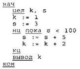 Определите значение переменной k после выполнения следующего фрагмента программы, записанной ниже на разных языках программирования.