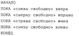 Выполняется, пока условие истинно, иначе происходит переход на следующую строку. Сколько клеток приведённого лабиринта соответствует требованию, что, выполнив предложенную ниже программу, РОБОТ остановится в той же клетке, с которой он начал движение?