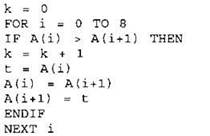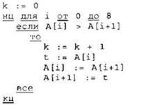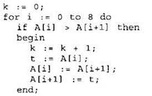19. В программе используется целочисленный массив А с индексами от 0 до 9. Значения элементов массива равны 4; 5; 4; 7; 6; 3; 9; 11; 7; 8 соответственно, т.е. А[0] = 4; А[1] = 5 и т.д.
