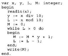 В качестве ответа вам необходимо привести фрагмент программы (или описание алгоритма на естественном языке), который должен находиться на месте многоточия. Вы можете записать решение также на другом языке программирования (укажите название и используемую версию языка программирования, например, Borland Pascal 7.0) или в виде блок-схемы. В этом случае вы должны использовать те же самые исходные данные и переменные, какие были предложены в условии (например, в образце, записанном на естественном языке).