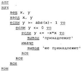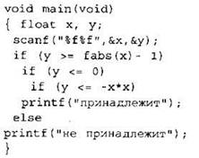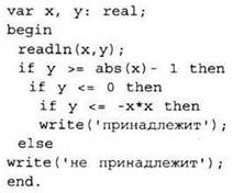 24. Требовалось написать программу, при выполнении которой с клавиатуры считываются координаты точки на плоскости (x, у — действительные числа) и определяется принадлежность этой точки заданной закрашенной области (включая границы). Программист торопился и написал программу неправильно.