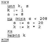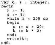 Определите значение переменной k после выполнения следующего фрагмента программы, записанной ниже на разных языках программирования.