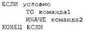 выполняется команда1 (если условие истинно) или команда2 (если условие ложно).