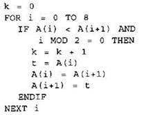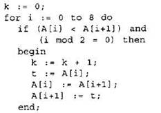 19. В программе используется целочисленный массив А с индексами от 0 до 9. Значения элементов массива равны 4; 5; 4; 7; 10; 8; 9; 11; 7; 8 соответственно, т.е. А[0] = 4; А[1] = 5 и т.д.