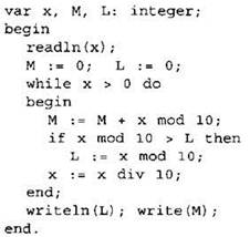 В качестве ответа вам необходимо привести фрагмент программы (или описание алгоритма на естественном языке), который должен находиться на месте многоточия. Вы можете записать решение также на другом языке программирования (укажите название и используемую версию языка программирования, например, Borland Pascal 7.0) или в виде блок-схемы. В этом случае вы должны использовать те же самые исходные данные и переменные, какие были предложены в условии (например, в образце, записанном на естественном языке).