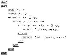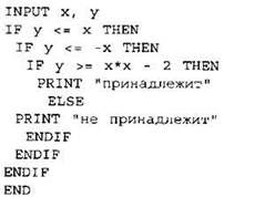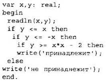24. Требовалось написать программу, при выполнении которой с клавиатуры считываются координаты точки на плоскости (х, у — действительные числа) и определяется принадлежность этой точки заданной закрашенной области (включая границы). Программист торопился и написал программу неправильно.