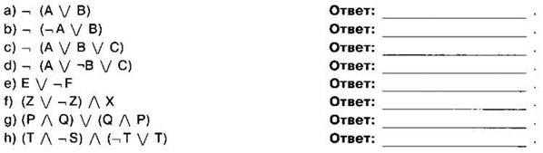 Задание 3.2.2. Запишите выражение, эквивалентное данному, содержащее не более одной операции отрицания. Постарайтесь, чтобы это выражение было как можно более коротким.
