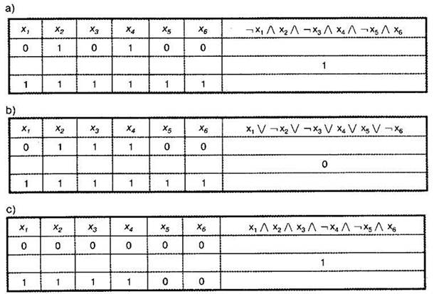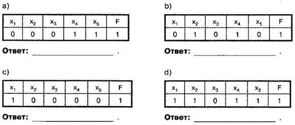 Задание 3.3.3. Восстановите логическое выражение F по строке его таблицы истинности, если известно, что оно имеет вид А1 Λ А2 Λ ... Λ Аn, где каждое слагаемое Аi является либо логической переменной хi, либо её отрицанием ¬xi.
