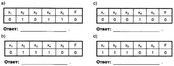 Задание 3.3.2. Восстановите логическое выражение F по строке его таблицы истинности, если известно, что оно имеет вид А1 Λ А2 Λ ... Λ Аn, где каждый множитель Ai является либо логической переменной хi, либо её отрицанием ¬xi. (прямоугольник для ответа на 20—25 знаков для каждого пункта)