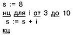 Задание 4.6.3. Определите значение переменной s после выполнения следующего фрагмента программы: