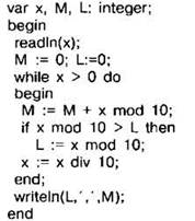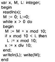 Задание 4.11.3. Ниже на 4 языках записана программа. На вход программе подаётся число 32587. Укажите, что выведет на экран программа.