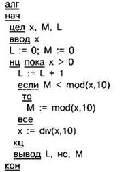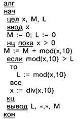Задание 4.11.12. Ниже на 4 языках записан алгоритм. Получив на вход число х, этот алгоритм печатает два числа L и М. Укажите наибольшее число х, при вводе которого алгоритм печатает сначала 4, а потом 7.