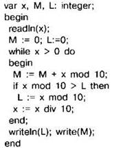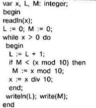 Задание 4.11.5. Ниже на 4 языках записан алгоритм. Получив на вход число х, этот алгоритм печатает два числа: L и М. Укажите наибольшее из таких чисел х, при вводе которых алгоритм печатает сначала 3, а потом 11.