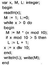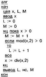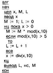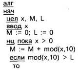 Задание 4.11.11. Ниже на 4 языках записан алгоритм. Получив на вход число х, этот алгоритм печатает два числа L и М, Укажите наименьшее число х, при вводе которого алгоритм печатает сначала 5, а потом 8.