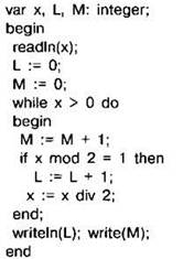 Задание 4.11.7. Ниже на 4 языках записан алгоритм. Получив на вход число х, этот алгоритм печатает два числа L и М. Укажите наибольшее из таких чисел х, при вводе которых алгоритм печатает сначала 3, а потом 4.