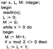 Задание 4.11.4. Ниже на 4 языках записан алгоритм. Получив на вход число х, этот алгоритм печатает два числа: L и М. Укажите наименьшее из таких чисел х, при вводе которых алгоритм печатает сначала 8, а потом 13.