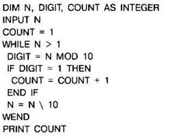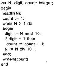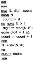 Задание 4.16.2. Программа должна определять количество единиц в десятичной записи заданного натурального числа. С клавиатуры считывается натуральное число N, не превосходящее 109, и выводится количество единиц в десятичной записи этого числа. Программист торопился и написал программу неправильно.