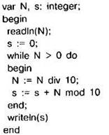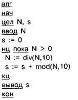Задание 4.16.4. С клавиатуры считывается натуральное число N, не превосходящее 109. Программа должна выводить сумму цифр этого числа. Программист торопился и написал программу неправильно.