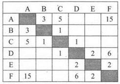 3. Между населёнными пунктами А, В, С, D, Е, F построены дороги, протяжённость которых (в километрах) приведена в таблице.