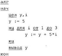 Запись Повтори k [Команда 1 Команда2 Команда3] означает, что последовательность команд в скобках повторится k раз.