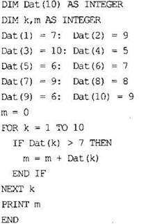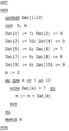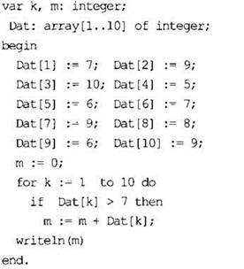 10. В таблице Dat хранятся данные о количестве сделанных учениками заданий (Dat[1] заданий сделал первый ученик, Dat[2] - второй и т.д.). Определите, какое число будет напечатано в результате работы следующей программы. Текст программы приведён на трёх языках программирования.