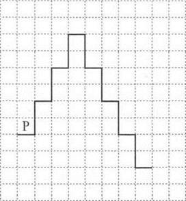 На бесконечном поле имеется лестница. Сначала лестница слева направо поднимается вверх, затем спускается вниз. Высота каждой ступени - две клетки, ширина - одна клетка. Робот находится на нижней ступеньке лестницы слева.