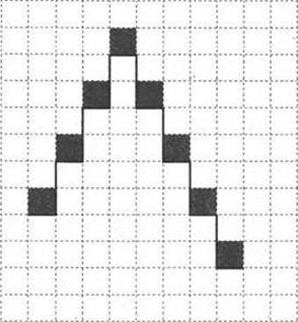 Напишите для Робота алгоритм, закрашивающий все клетки, расположенные непосредственно над ступенями лестницы. Требуется закрасить только клетки, удовлетворяющие данному условию. Например, для приведённого выше рисунка Робот должен закрасить следующие клетки (см. рисунок):
