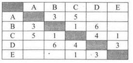 3. Между населёнными пунктами А, В, С, D, Е построены дороги, протяжённость которых приведена в таблице.