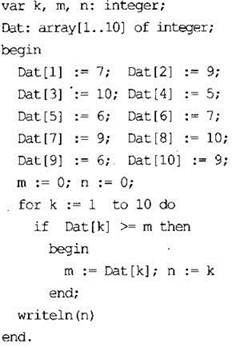 10. В таблице Dat хранятся данные о количестве сделанных учениками заданий (Dat[1] заданий сделал первый ученик, Dat[2] - второй и т. д.). Определите, какое число будет напечатано в результате работы следующей программы. Текст программы приведён на трёх языках программирования.