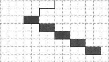 Напишите для Робота алгоритм, закрашивающий все клетки, расположенные непосредственно над ступенями лестницы, спускающейся слева направо. Требуется закрасить только клетки, удовлетворяющие данному условию. Например, для приведённого выше рисунка Робот должен закрасить следующие клетки (см. рисунок):