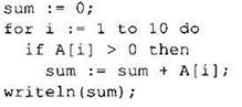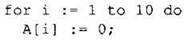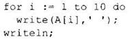Обратите внимание — эта строка (for i := 1 to 10 do), перебирающая все элементы массива от первого индекса до последнего — будет использоваться практически во всех алгоритмах, обрабатывающих массив.