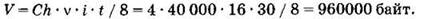 Теперь подставим все полученные величины в формулу объёма звукового файла: