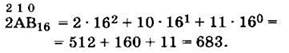 Аналогично переведём число 2AB16. Нумеруем разряды: