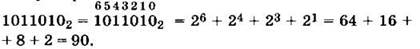 2) выписываем двоичное число с единицами в тех позициях, которые имеют степени числа 2.