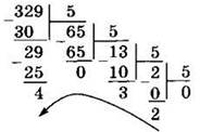 Для этого будем делить уголком на 5 и собирать остатки в обратном порядке: