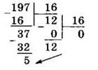 Обратите внимание, последнее действие — деление числа 1 на число 2. При этом получается вовсе не 0,5, как мы привыкаем к 9-му классу, а 0 целых и 1 в остатке. То есть, если делимое меньше делителя, то частное получается 0 и в остатке остаётся целиком делимое. Например, при делении 13 нацело на 16, получается 0 и в остатке 13.
