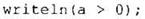 В некоторых разновидностях сред программирования на Паскале вывод на экран TRUE и FALSE происходит как True и False. При выполнении этого и подобных заданий это не считается ошибкой.