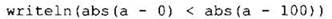 Теперь нужно проверить, верно ли, что число ближе к нулю, чем к числу 100. Степень близости переменной к какому-либо значению определяется в математике как разность по модулю. Значит, вычислим разность по модулю числа с нулём и сравнить её с разностью по модулю числа с числом 100. Выводим результат на экран: