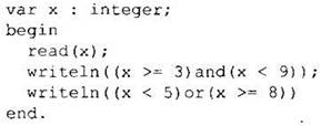 Логические выражения более подробно описываются на стр. 50. Здесь рассмотрим, как те же выражения можно записать на языке программирования Паскаль.