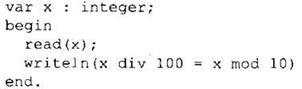 Для выделения последней цифры любого натурального числа достаточно найти остаток от деления числа на 10. На Паскале это делает операция mod 10. Получаем программу (ответ):