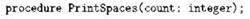 Описав процедуру, мы можем теперь в любом месте программы вызвать её, написав что-то вроде PrintSpaces(k), и будет напечатано k пробелов.