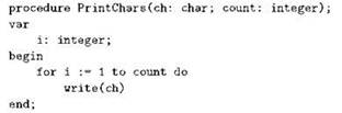 Подчеркнём, что имена i и count в этой процедуре локальные, то есть они не оказывают никакого влияния на всю остальную программу: мы в любом месте можем, например, описывать переменные (и не только переменные) с такими же именами, причём, возможно, других типов, и ни к каким плохим последствиям это не приведёт.