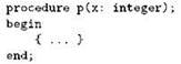 Параметры, которые мы применяли в наших подпрограммах до сих пор, иногда называют параметрами-значениями. Имя такого параметра, данное ему в заголовке подпрограммы, представляет собой фактически локальную переменную, в которую при вызове подпрограммы заносится значение, указанное в вызове (отсюда название “параметр-значение”). Например, если у нас есть процедура р с параметром х: