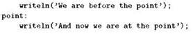 Обычно описание меток вставляют непосредственно перед словом begin или перед разделом описания переменных. Надо отметить, что Паскаль запрещает “перепрыгивать” из одной подпрограммы в другую, “запрыгивать” в подпрограмму из основной программы и “выпрыгивать” в основную программу из подпрограмм, так что делать метки “глобальными” нет никакого смысла. Метки, используемые внутри подпрограммы, следует описывать в разделе описаний этой подпрограммы, а метки, потребовавшиеся в главной части программы — непосредственно перед её началом.